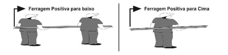 As vigas acima de 3.00 metros deverão ser transportada por dois operários. Veja a maneira correta no desenho ao lado: