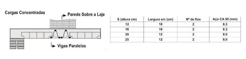 Nunca coloque parede sobre a laje sem previas definições. Quando houver cargas concentradas nas lajes (parede sobre laje), deverá ser utlizadas nervuras de travamentos quando a parede for no sentido transversal da laje. e uando for no sentido da laje utlizar vigas paralelas conforme a figura ao lado. alem desses recursos à laje deverá ser reforçada para resistir esses carregamentos adicionais. Consulte-nos